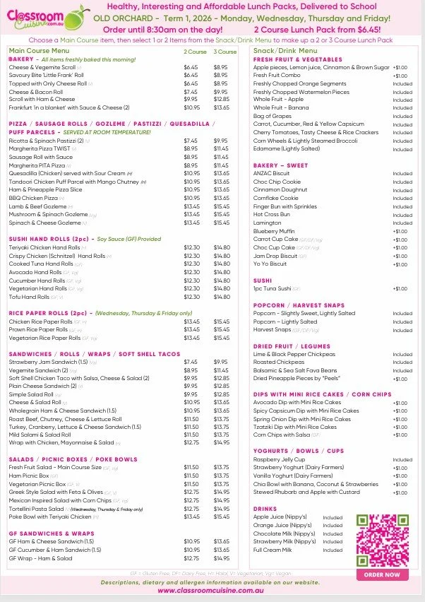 Canteen Term 1 , 2026 - New to Old Orchard for 2026